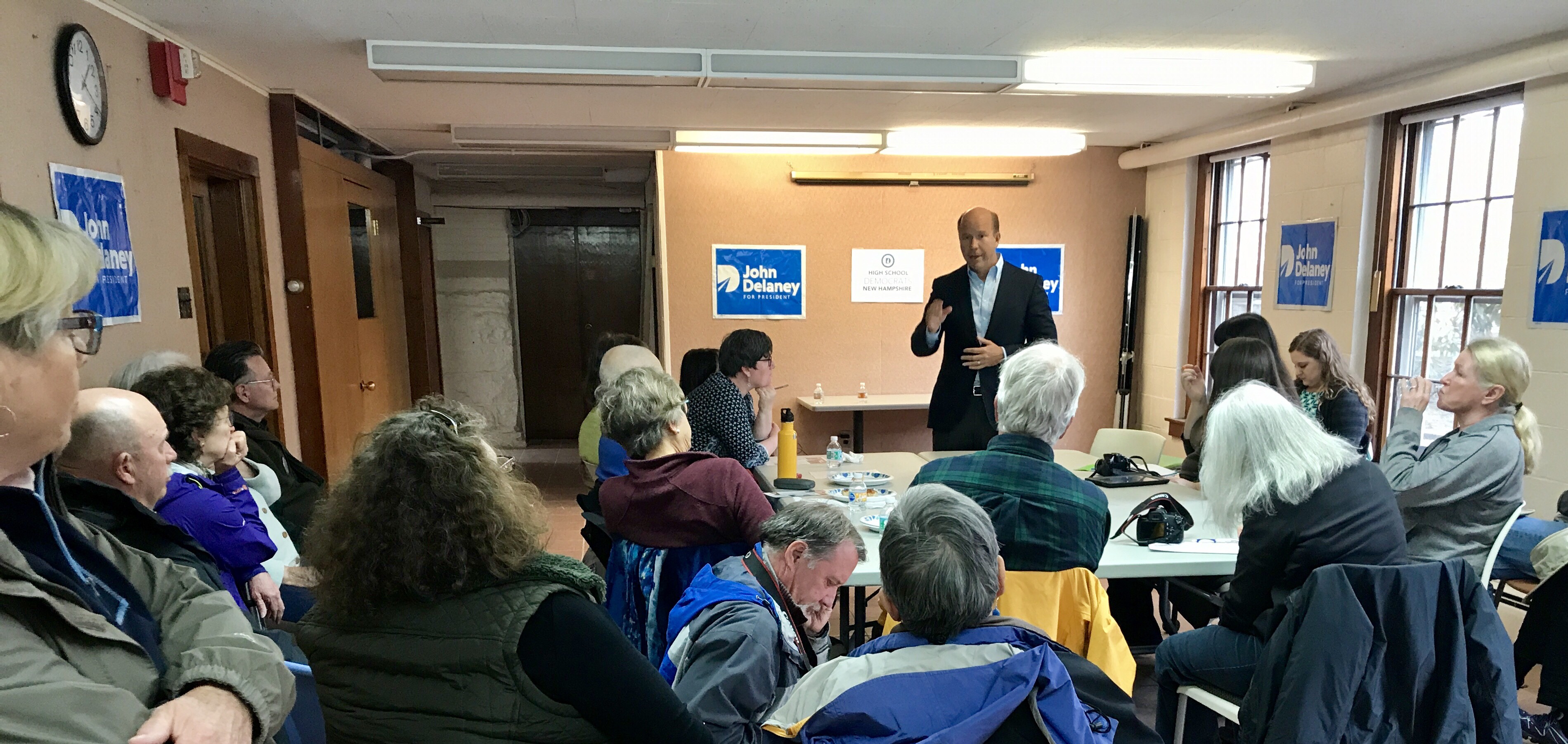 Delaney said he flew in Sunday morning and started his day meeting with a small group of voters before the library event. After the event wrapped up Delaney headed to Keene for a house party.